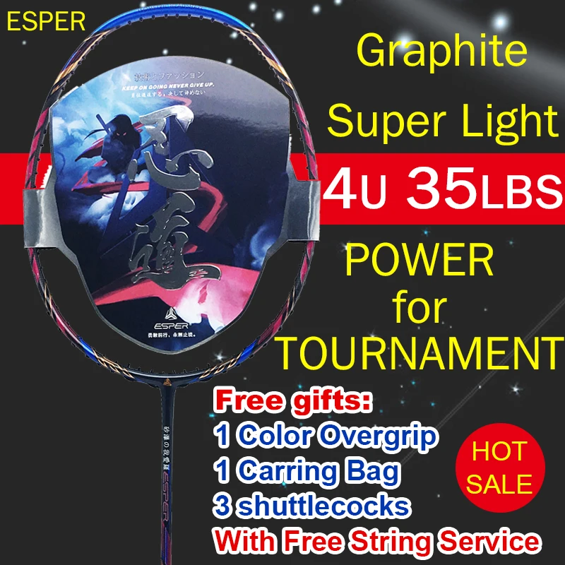 ESPER Badminton Racket 4U High Quality Graphit Carbon Fiber Racquet Lightweight 35LBS With String O